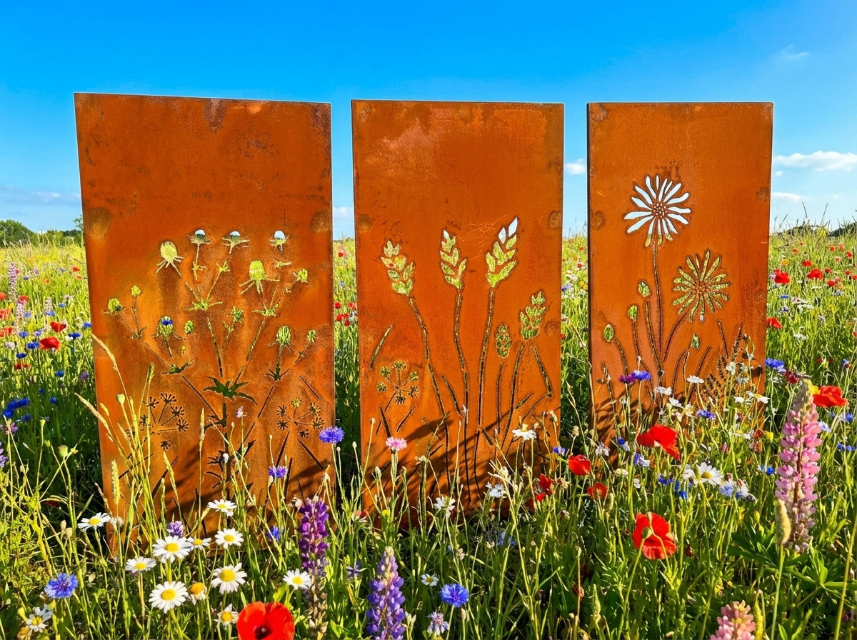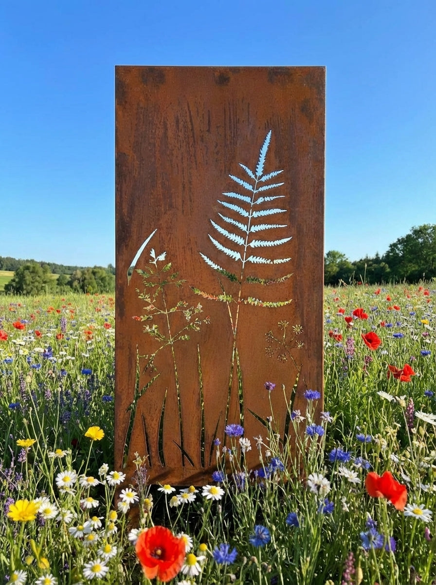 12 verschiedene Motive!!! Sehr gut kombinierbar, mit Rahmen verschweisst - sehr stabile Bauweise - inkl. Erdspieße super einfach aufzustellen - einfach Erdspieße in den Bodenstecken, Stele aufsetzen, fertig - schnell versetzbar.